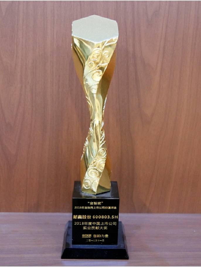 2018年11月,在“金智奖”2018年金融界上市公司价值评选活动中荣获 “实业贡献大奖”。